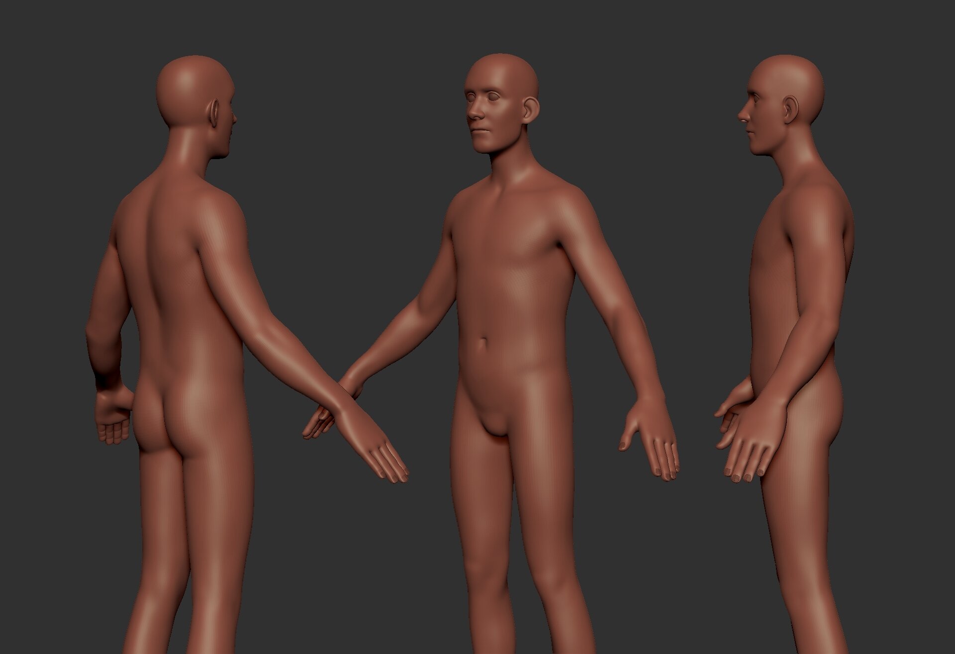 A generic human basemesh built as a starting point for humanoid characters.