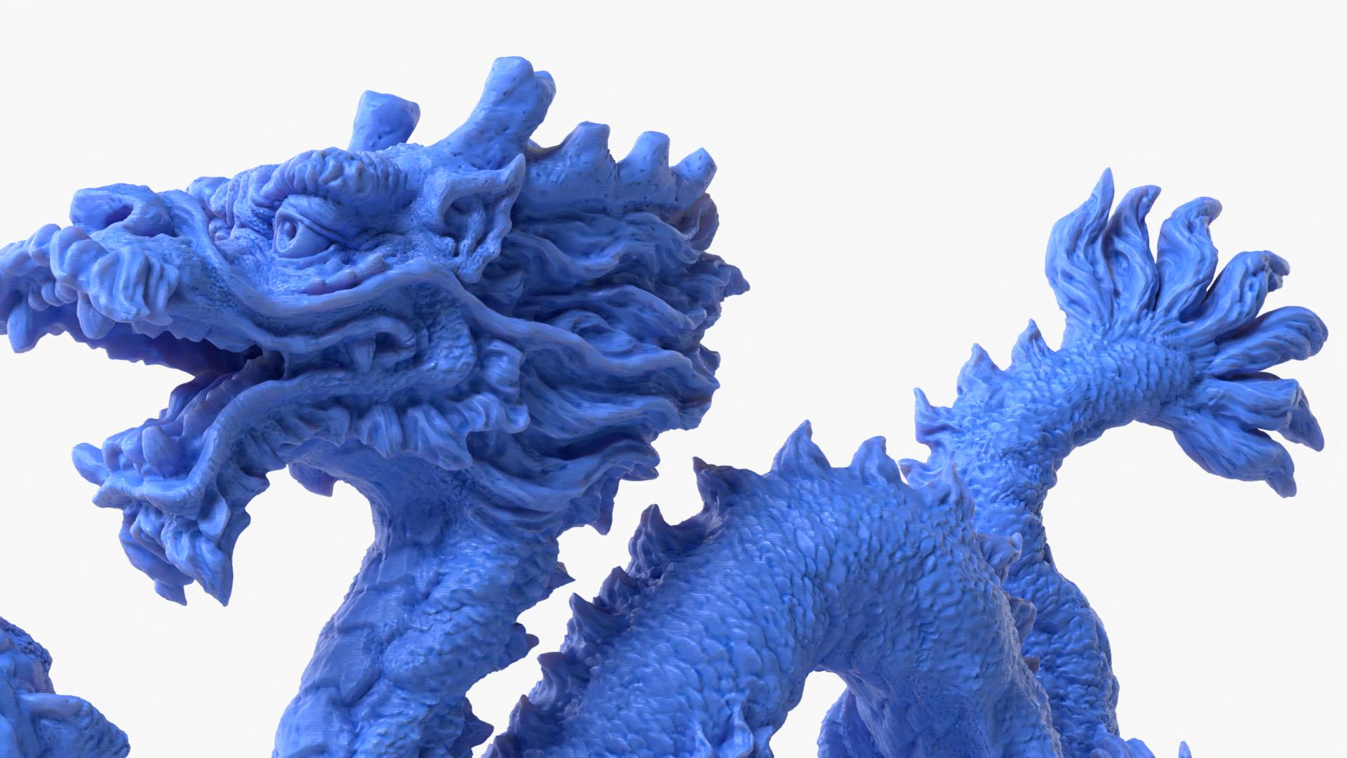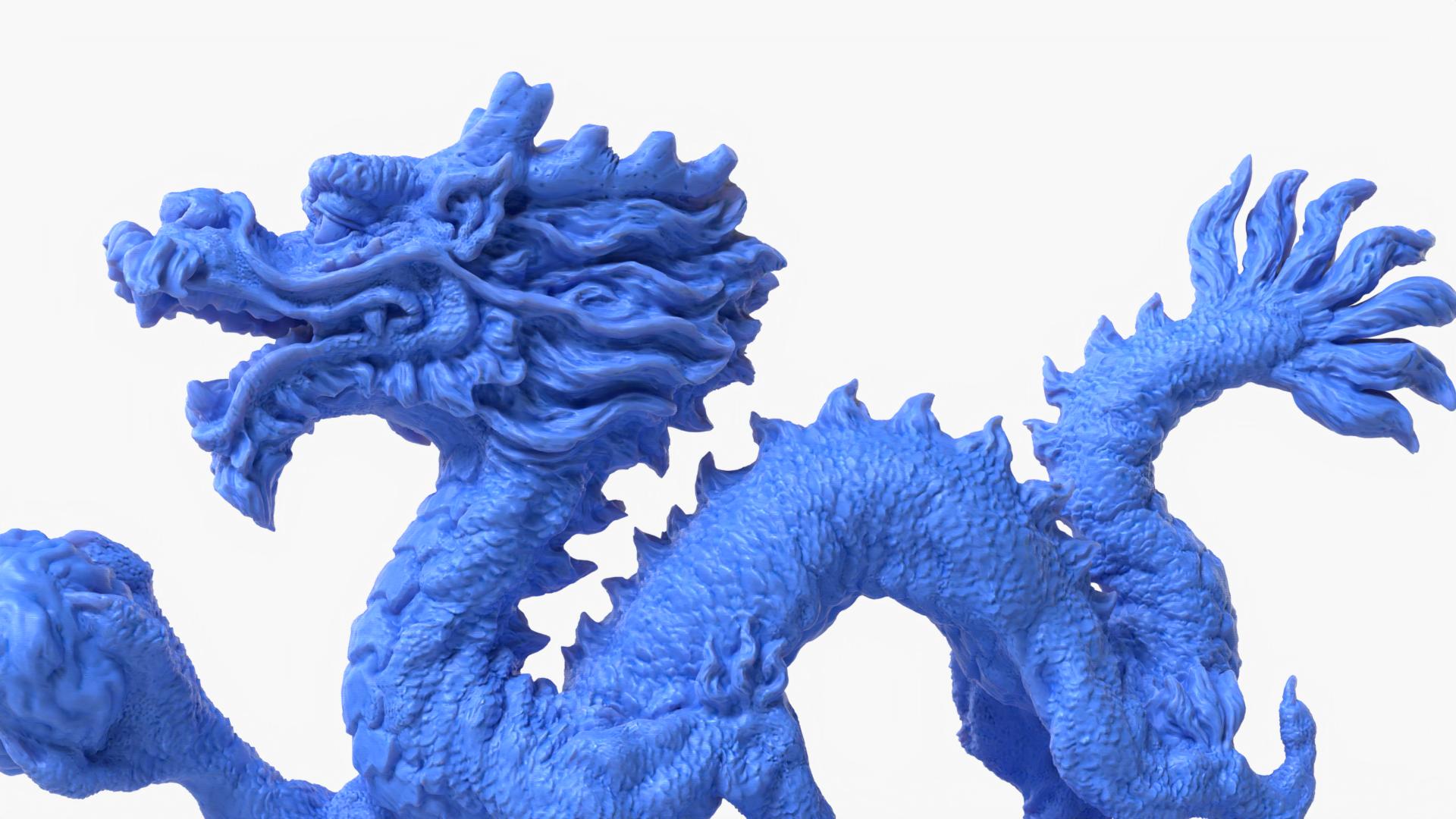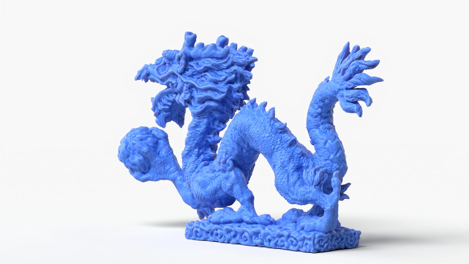 A highly detailed Stanford Dragon reimagined with new artistic detail and a dynamic traditional Chinese dragon silhouette.